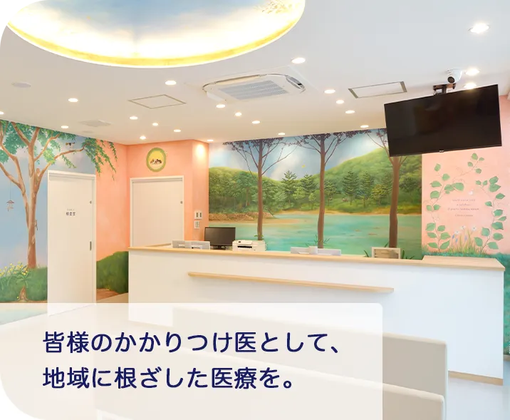 新しい医院には駐車場と駐輪場が完備され、エレベーターやバリアフリーの院内環境を整えています。トイレにはオムツ替え台を設置し、ベビーカーや車いすでも快適に移動いただけます。周辺には調剤薬局も多く、皆さまに安心して長く通っていただける環境を提供しています。